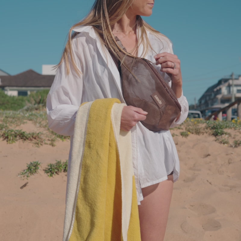 The perfect everyday bag, crafted from the same high-quality, sand-sifting mesh as our beloved beach bags. This lightweight, functional crossbody design is made just for her - designed for the active, beach-loving woman, it complements a sporty yet effortless style.
